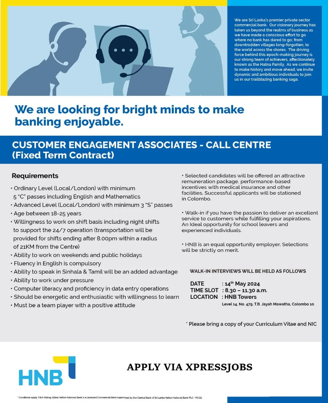 Homebanking-jobsHatton National Bank PLC/HNB Bank Vacancies Hatton National Bank PLC/HNB Bank Vacancies Jobconlk January 25, 2025 0 Hatton National Bank PLC/HNB Bank Vacancies Tags banking-jobs Newer Older